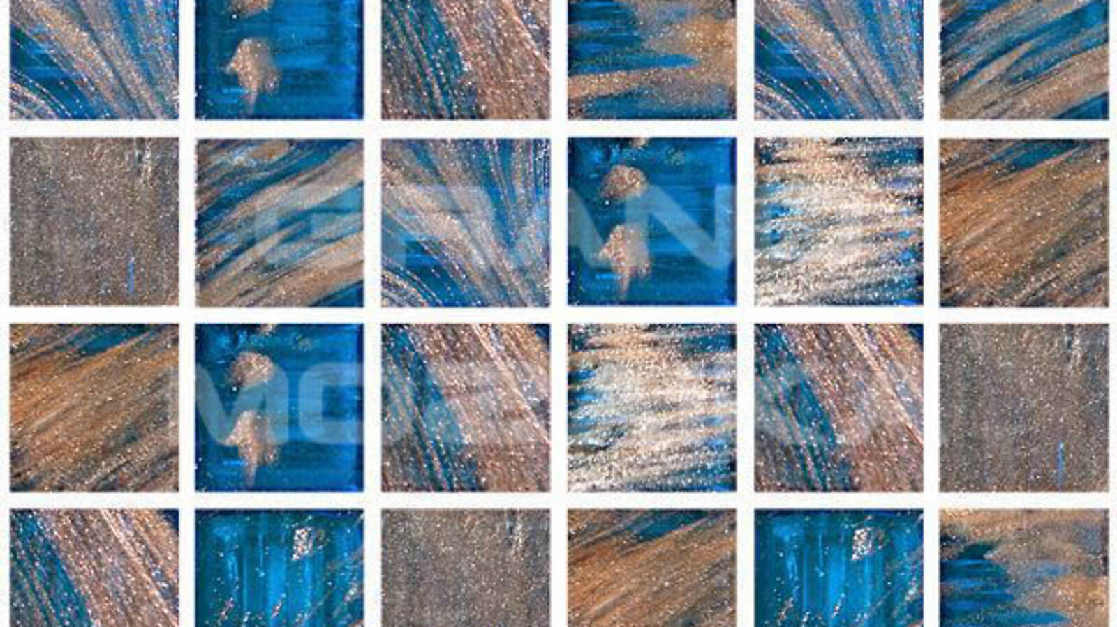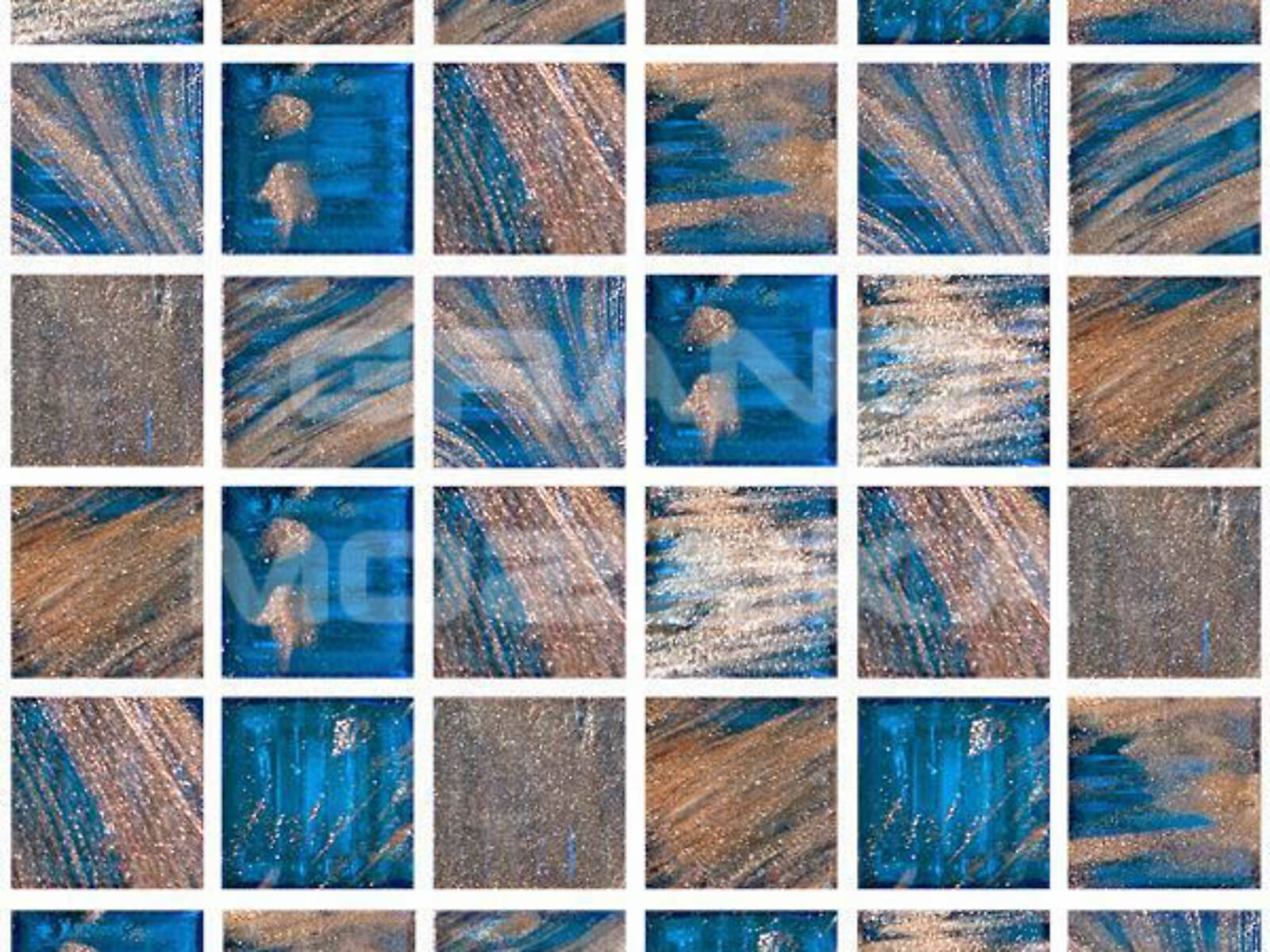 Стеклянная мозаика с авантюрином, серия Diamante, цвет: голубой, размер чипа (мм): 10x10