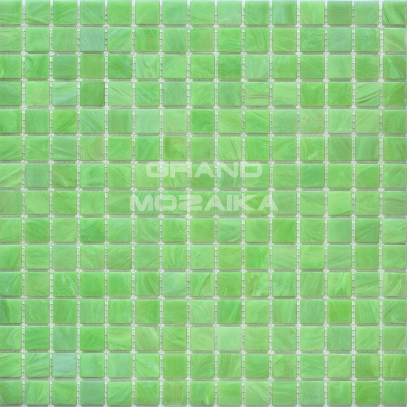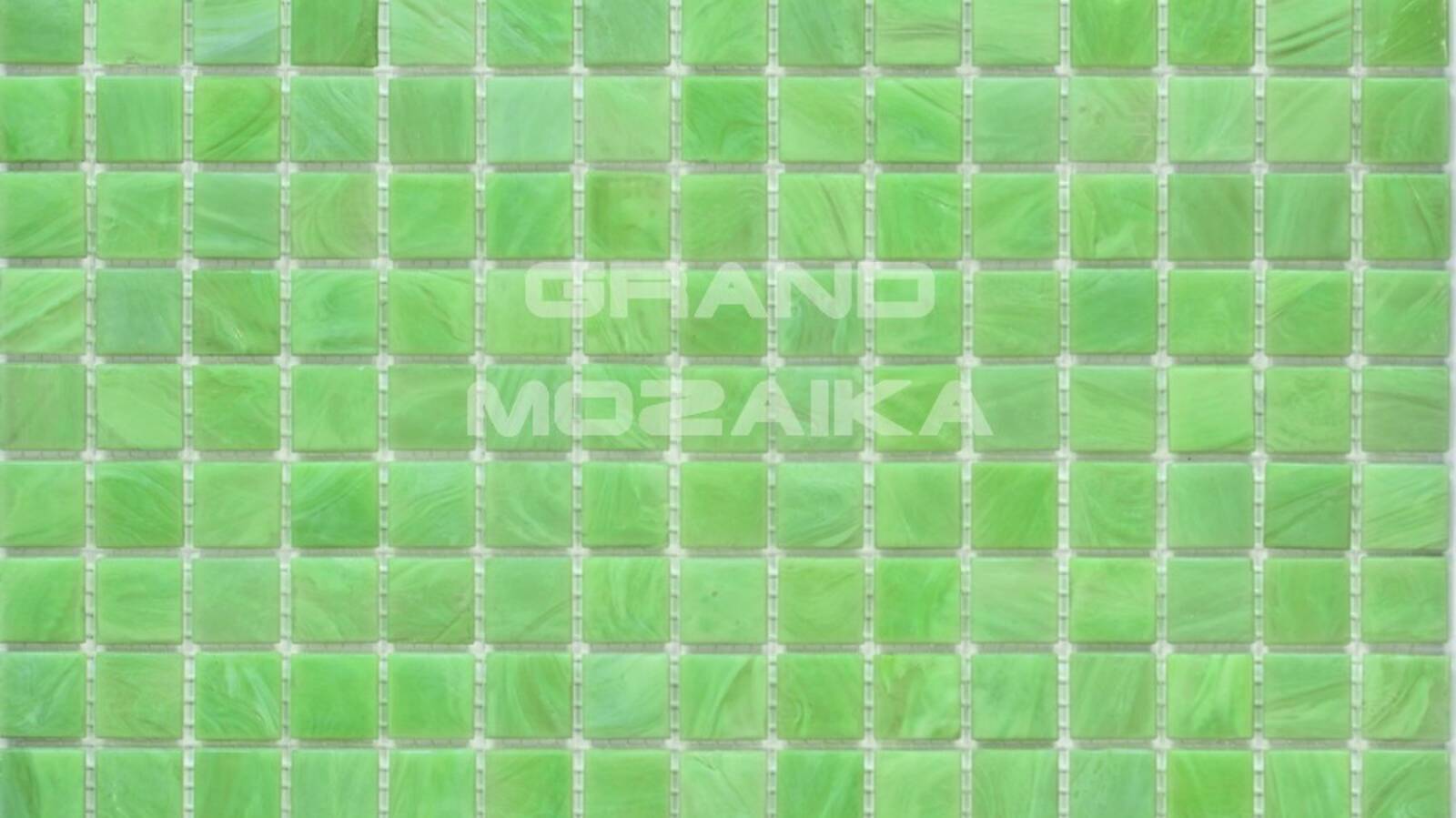 Стеклянная мозаика серии Alba. Цвет неоднородный – мутновато-зеленый, болотный. Рисунок под мрамор. Полотно состоит из плиток размером 20 на 20 мм и толщиной 4 мм. Отлично подходит для декора помещений с повышенной влажностью. Благодаря гладкой и прочной поверхности, на мозаичном стекле не селится грибок.