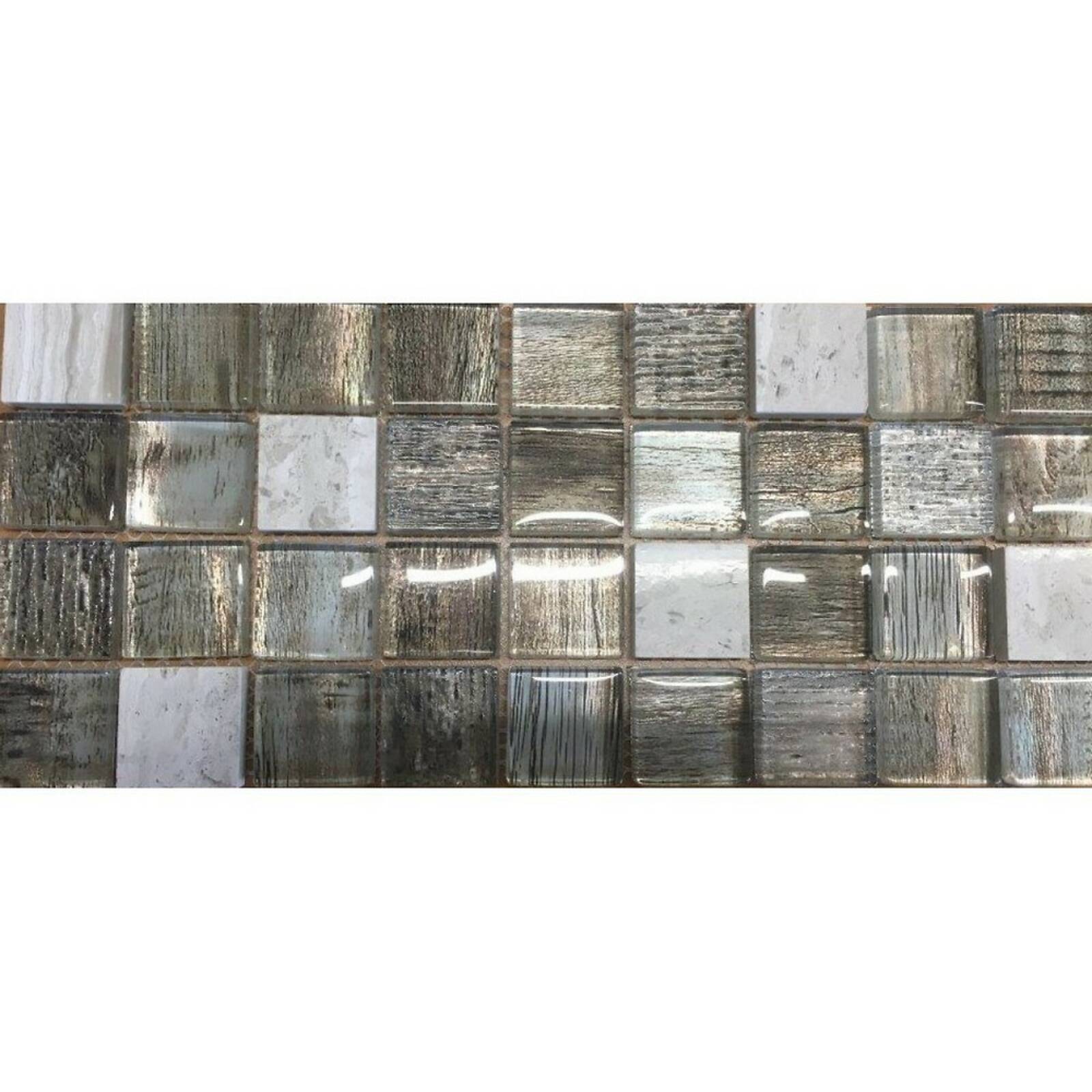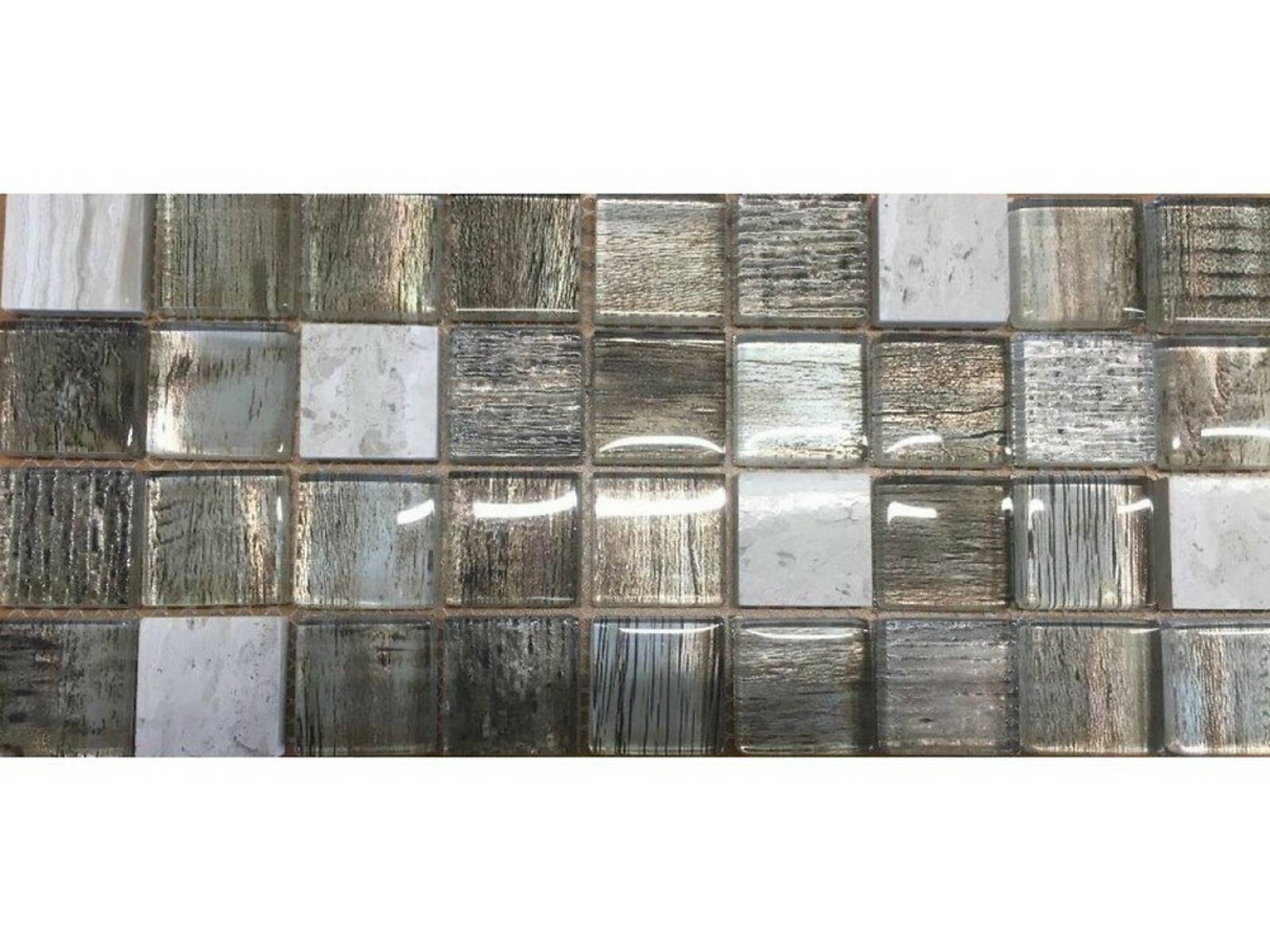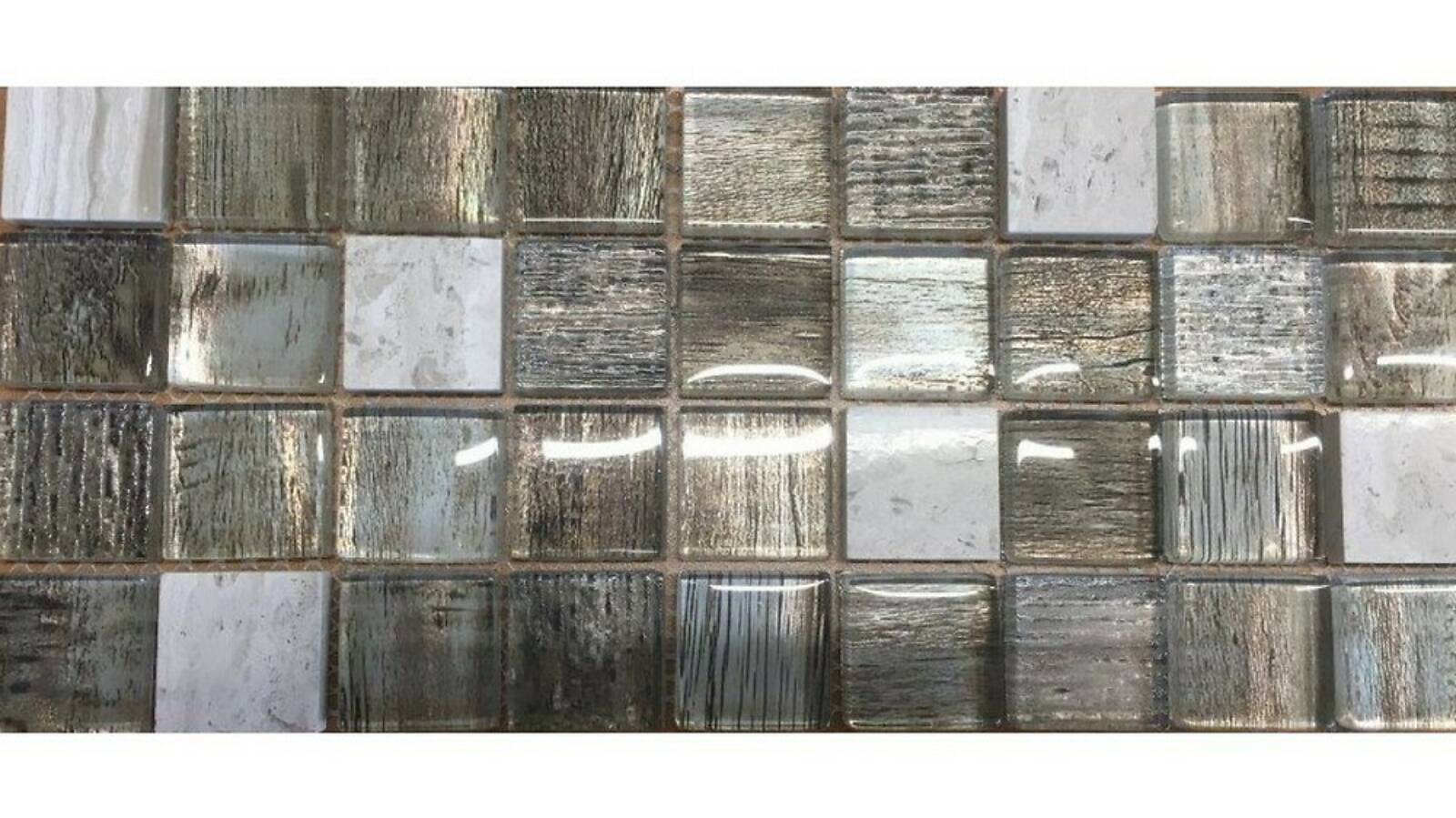 Мозаика из стекла и камня, серия Uland, цвет: серый, серебряный, бежевый, размер чипа (мм): 30x30